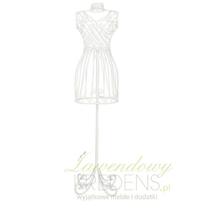 Wyjątkowo urodny manekin prowansalski wykonano z metalu, który nstępnie pomalowano na biało. Korpus manekina przedstawia wzór sukienki o pięknych, lekkich zdobieniach o falistej linii. W dolnej części przedmiotu przewidziano mejsce dla artystycznie wygiętych nóżek statywu. Manekin wygląda świeżo, elegancko i bajecznie!