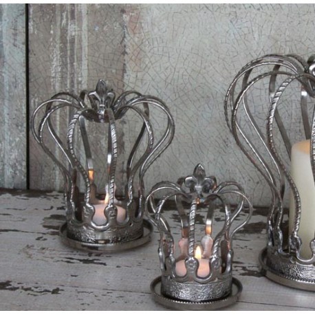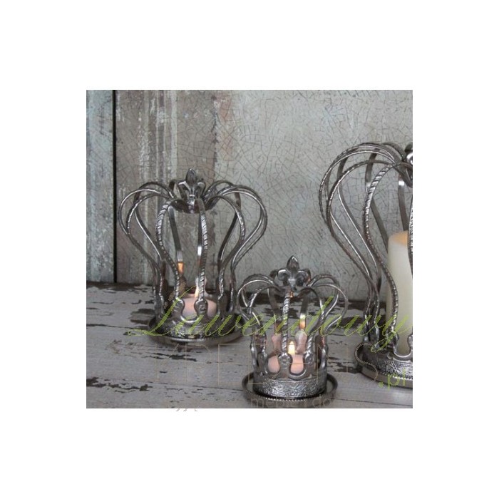 Duży świecznik prowansalski został wykonany z metalu i ukształtowany na wzór korony. Do środka świecznika świetnie pasują najprostsze wkłady świecowe. Dzięki swoim niebanalnym kształtom przedmiot ten wprowadzi do Twojego mieszkania nutkę oryginalności i ciepło płomienia. Cudeńko! Cena za 1 szt.