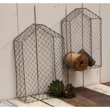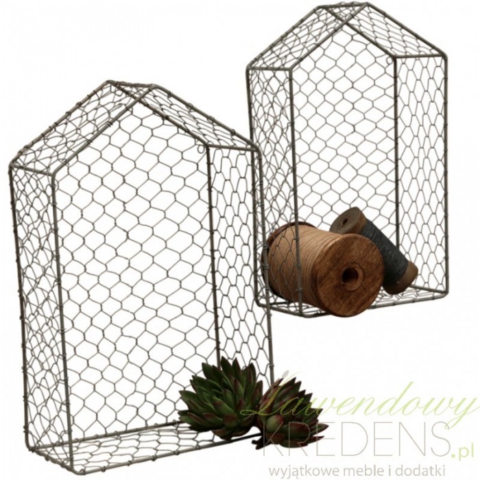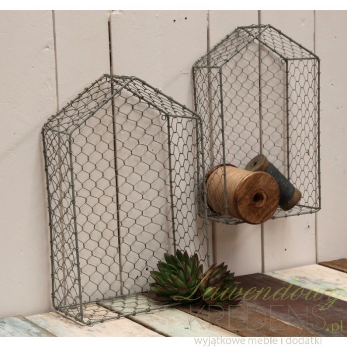 Metalowe półki w stylu skandynawskim zostały ukształtowane na wzór domku. Wszystkie ściany mebla zbudowano z metalowej siatki o ciemnym kolorze. Te ciekawie prezentujące się półki ścienne Chic Antique możesz ulokować zarówno w salonie jak i w kuchni - pasują do każdego pomieszczenia. Polecamy!