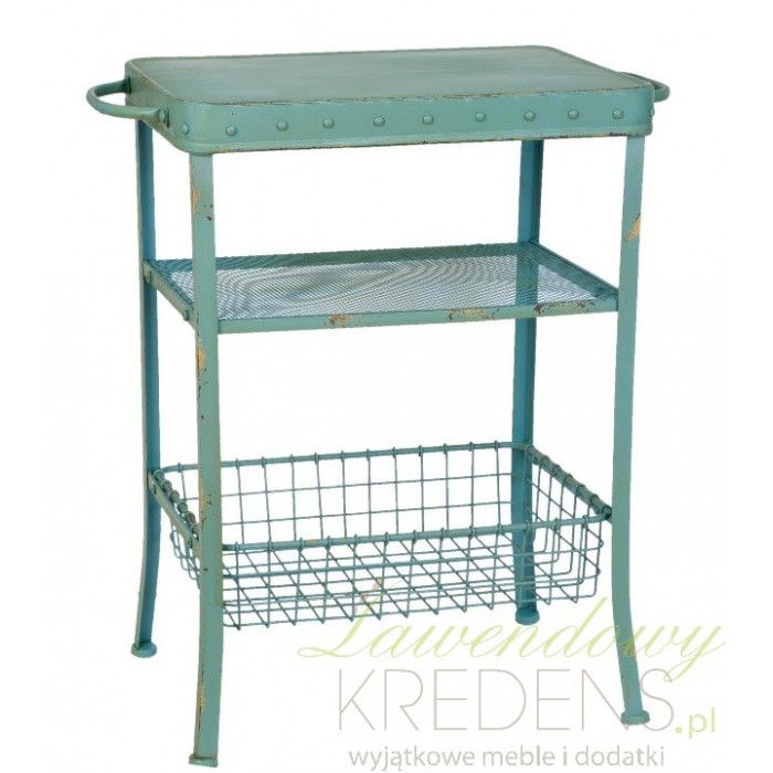 Metalowy stolik w stylu prowansalskim, który państwu prezentujemy to zielona wyspa we wnętrzu, która proponuje: pojemny koszyk w najniższej warstwie, podblatową półkę na poręcznej wysokości i stylowy blat z uchwytami na krótszych krawędziach. Kompozycja doskonała tak do salonu jak i do sypialni czy przedpokoju!