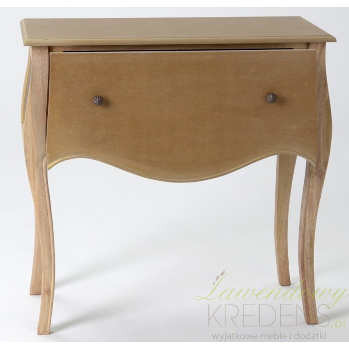 Meble prowansalskie to oryginalne i wyjątkowe meble, które na długo pozostaną w twojej pamięci. Komoda prowansalska pochodzenia francuskiego ma piękny brązowy kolor, dzięki któremu wygląda bardzo naturalnie. Posiada jedną dużą szufladę na najpotrzebniejsze artykuły. Polecamy!