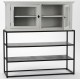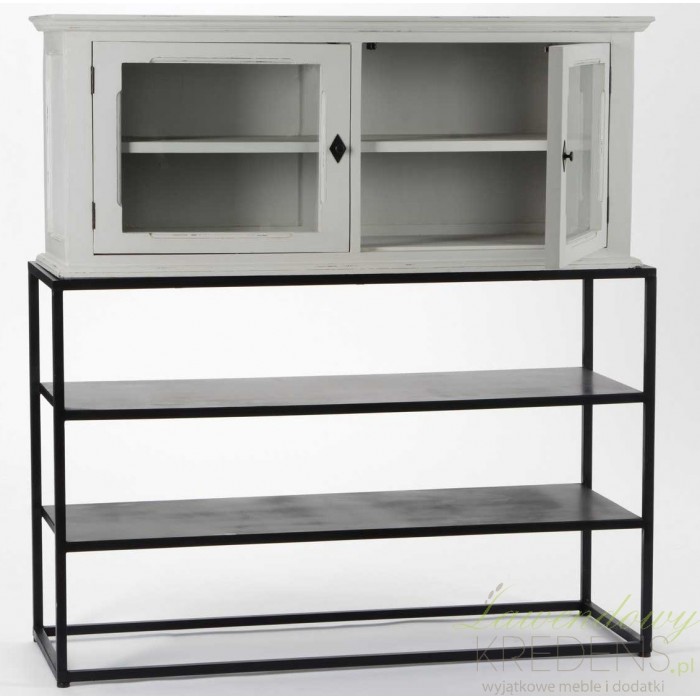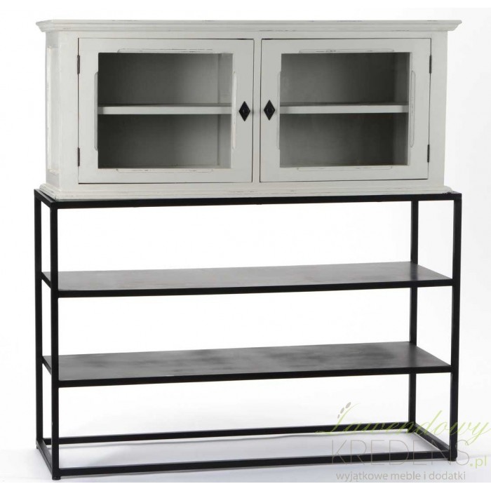 Konsola prowansalska o metalowym dole z półkami oraz drewnianą górę z drzwiczkami. Interesujące połączenie pasujące do wielu rodzaji stylów.