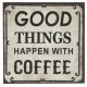 Zgrabny magnes na lodówkę wpisano w kształt kwadratu. Na powierzchni przedmiotu naniesiono napis o różnych stylach czcionki. Magnes utrzymany jest w kolorystyce bieli, czerni i brązów. Prezentuje się modnie i wyjątkowo. Zobacz sam! Magnesy retro - polecamy!