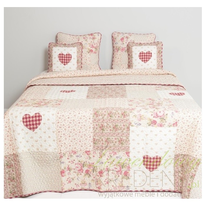 Narzuty na łóżko wykonane w stylu prowansalskim i z patchworku są wyśmienitą dekoracją pokoju. Narzuta na łóżko firmy Clayre & Eef wykonana jest z dobrej jakości bawełny. Narzuta patchworkowa to zlepek różnej wielkości kwadratów w jasno-beżowych kolorach, w których motywem przewodnim są kwiaty. Uroku dodają jej śliczne czerwone serduszka.