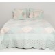 Śliczna narzuta patchworkowa w cudownych zielonych kolorach z wyróżniającym się motywem małych różowych kwiatów na dole!