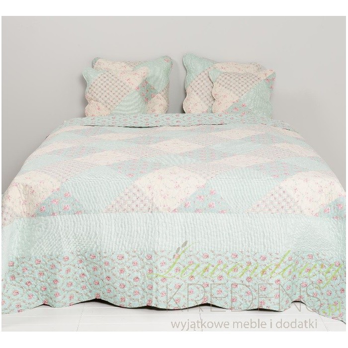 Narzuta na łóżko wykonana została w stylu prowansalskim, z wysokiej jakości bawełny i poliestru. Narzuta patchworkowa firmy Clayre & Eef ma piękny i delikatny seledynowy kolor w różne wzory. Narzuty na łóżko to świetny pomysł na oryginalną i niepowtarzalną stylistykę wnętrza.
