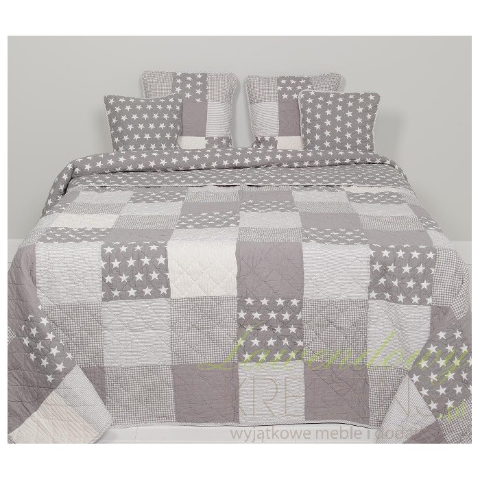 Narzuty na łóżko stanowią główną ozdobę pokoju. To one nadają mu niepowtarzalny styl i klimat. Narzuta na łóżko wykonana jest w stu procentach z dobrej jakości bawełny i ma szary kolor. Narzuta patchworkowa firmy Clayre & Eef jest pikowana i połączona z równej wielkości kwadratów różnego koloru i wzoru. Króluje tu cudowny motyw gwiazdek.