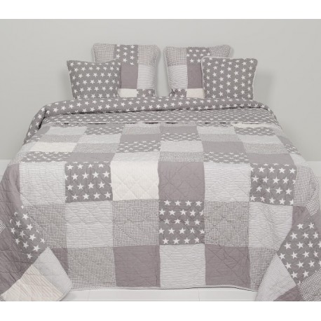W 100 % bawełniana narzuta patchoworkowa na łóżko, w której dominującym kolorem są odcienie szarości!