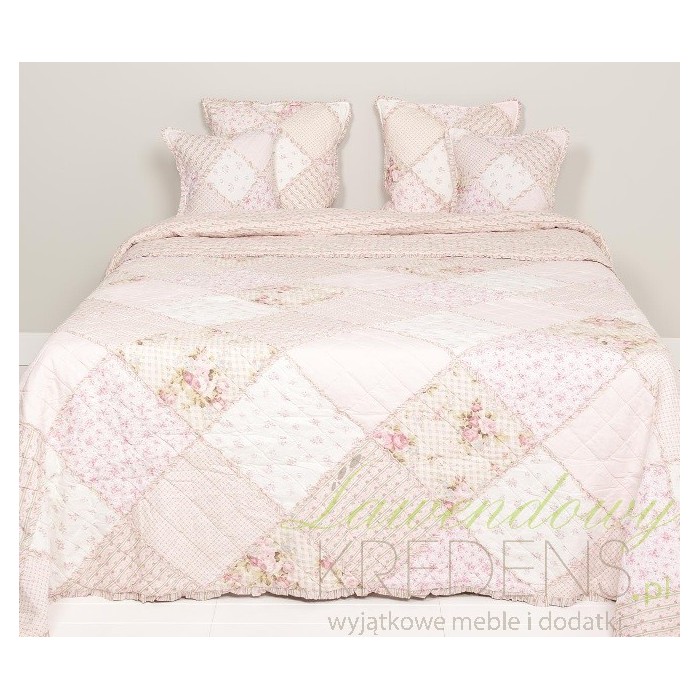 Przepiękna i delikatna narzuta na łóżko w kolorze bieli i różu cudownie rozświetli wnętrze twojego pokoju. Narzuta patchworkowa stworzona została z dużych, równej wielkości kwadratów o różnych wzorach, w których widoczny jest mocny akcent kwiatowy. Narzuty na łóżko fenomenalnie wyglądają w połączeniu z poduszkami. Polecamy!