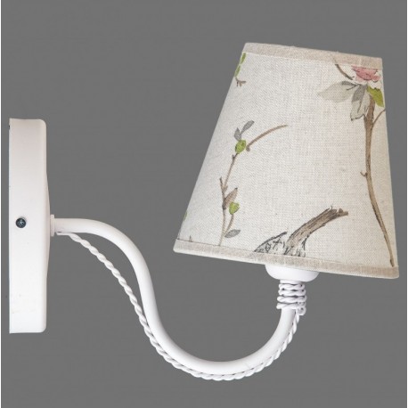 Oświetlenie prowansalskie, a przede wszystkim kinkiety w stylu prowansalskim to cudowna odmiana twojego domu. Kinkiet prowansalski firmy Tester Bis wykonany jest z metalu i lnu w kolorze białym. Abażur jest szyty ręcznie i posiada przepiękną dekorację w postaci kwiatków i ptaszków. To niezapomniana ozdoba twojego mieszkania.
