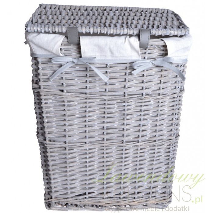 Dodatki do łazienki stanowią ważny element w życiu rodziny. To na nich można położyć wiele rzeczy lub ukryć. Kosz na pranie pochodzenia holenderskiego wykonany jest z szarej wikliny. W środku kosza znajduje się jasny bawełniany wkład, a przód kosza ozdobiony jest trzema małymi serduszkami z kokardkami. Wiklinowy kosz na bieliznę to świetna dekoracja mieszkania.