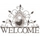 Napis welcome wykonany został z ciemnego metalu. Szyld welcome to zawieszka ozdobna, którą można zawieśić na ścianie lub też drzwiaczach.