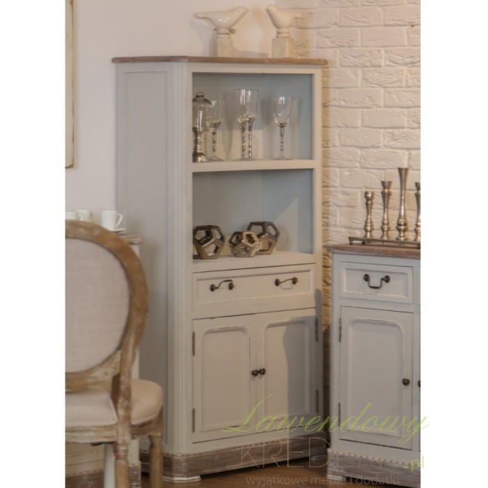 Meble prowansalskie to kolekcje mebli w tym samym stylu, które stanowią piękny wystrój mieszkania. Biblioteka prowansalska firmy Aluro wykonana jest z drewna i płyty MDF i ma kolor jasnoszary. Posiada dwie duże półki na ozdobne rzeczy czy książki oraz jedną szufladę i dużą szafkę. Biblioteka Palida zbudowana została w starym stylu, z postarzaną i przecieraną farbą przez co wygląda na wiekową.