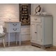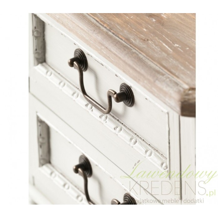 Meble prowansalskie to niepowtarzalny francuski klimat i styl. Stolik nocny prowansalski wykonany jest z drewna i płyty MDF. Stolik nocny Palida ma kolor jasnoszary, a blat jest w kolorze brązowym. Stolik ma dwie szufladki na potrzebne drobiazgi, które są delikatnie zdobione