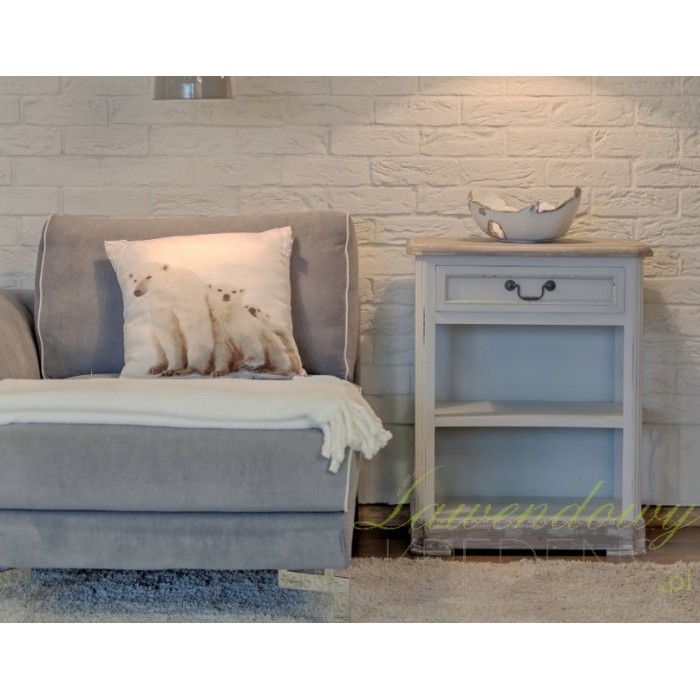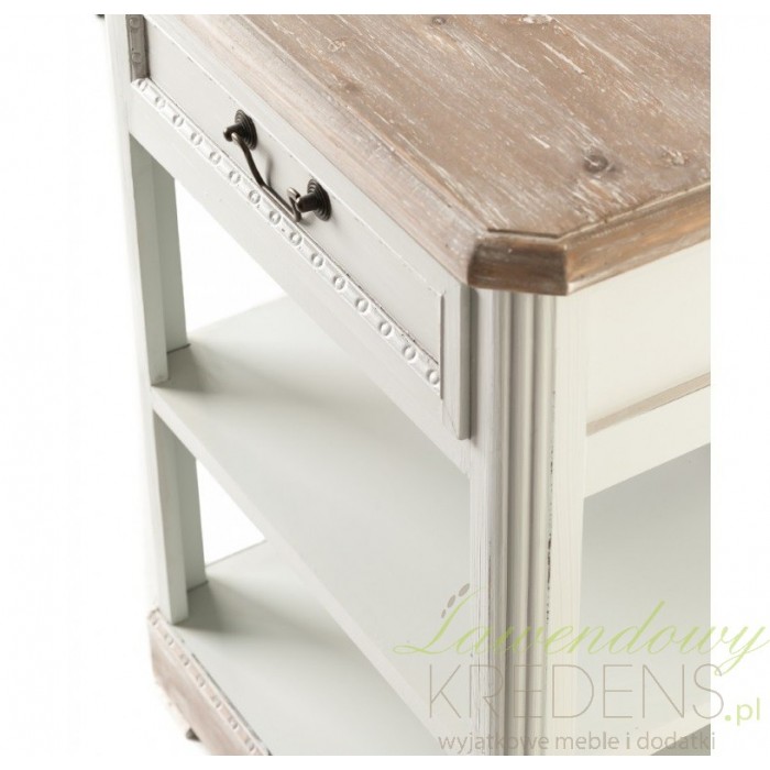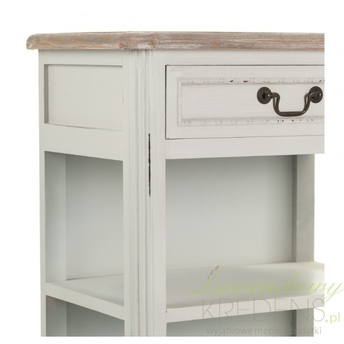 Jasnoszara szafka prowansalska firmy Aluro z dwoma półeczkami i szufladką!