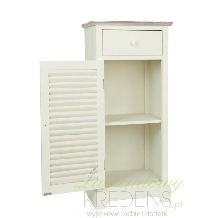 Meble prowansalskie to fenomenalna jakość i niepowtarzalny styl stworzone przez renomowane firmy. Szafka w stylu prowansalskim wykonana została z drewna w kolorze białym. Ma uniwersalny kolor, więc świetnie będzie komponować się w łazience. Szafka prowansalska ma jedną szufladkę na potrzebne kosmetyki i akcesoria oraz dużą szafeczkę z dwoma półeczkami.