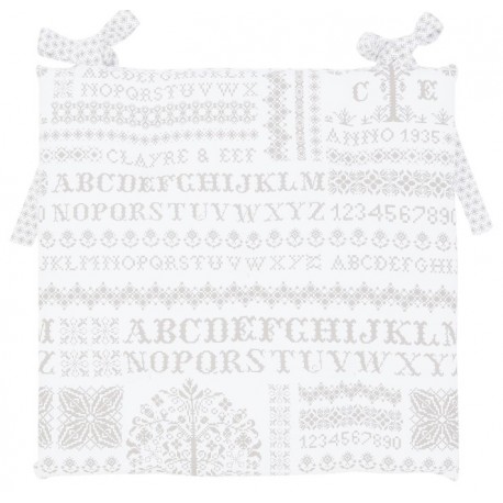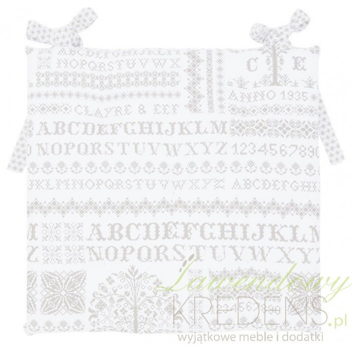 Niesamowita, kwadratowa poduszka na krzesło z alfabetem firmy Clayre & Eef z ozdobnymi kokardkami!