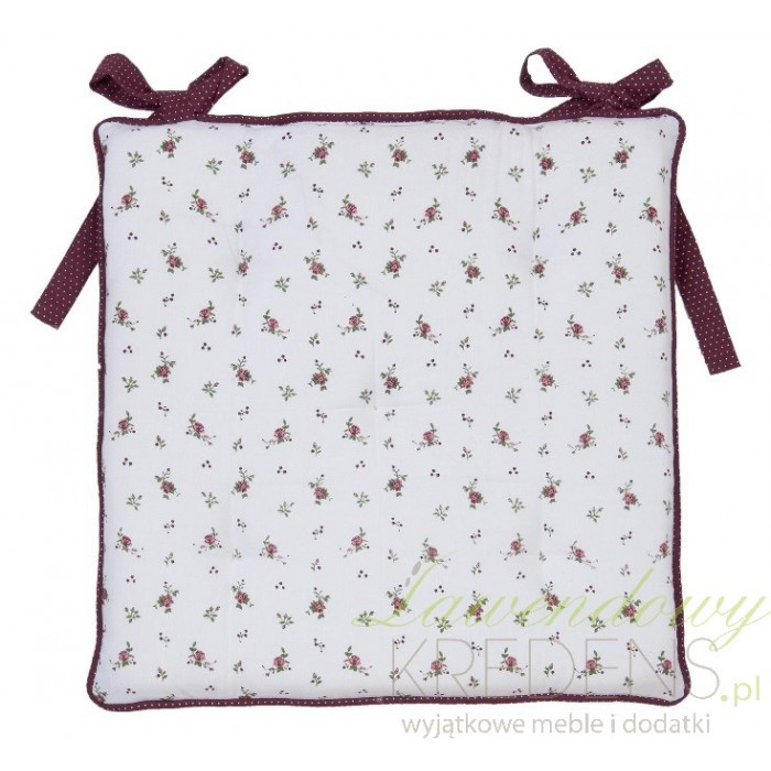 Poduszki na krzesła funkcjonują nie od dziś. Spelniają rolę dekoracyjną oraz praktyczną. Poduszka na krzesło z naszej oferty jest bawełniana, ma białe w drobne czerwone kwiatuszki wypełnienie oraz dodatkowo posiada wstążki, które pomogą w przywiązaniu do krzesła. Poduszki ozdobne można spotkać nie tylko w domach, ale również w kawiarniach, restauracjach czy salonach usługowych.