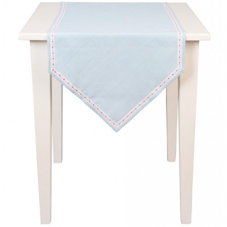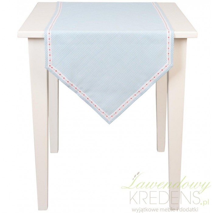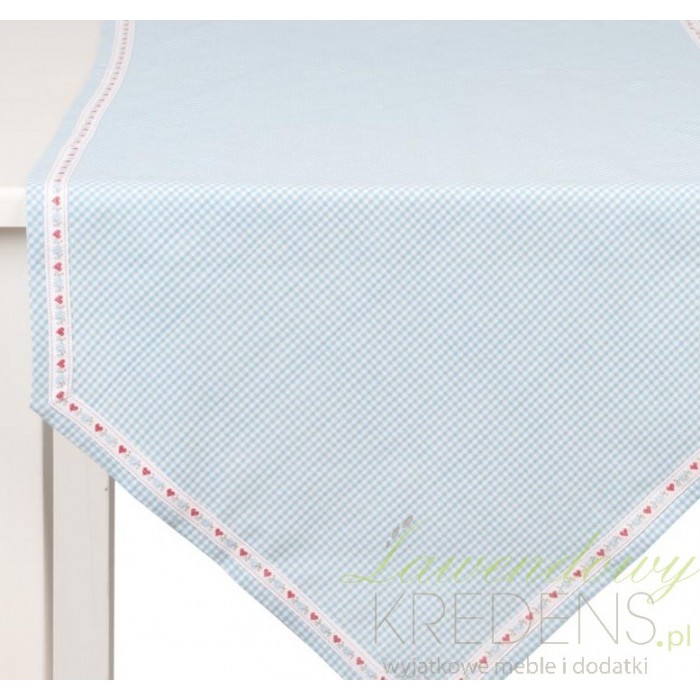 Bieżniki w stylu prowansalskim to różnorodność kolorów i wzorów. Bieżnik prowansalski wykonany jest z wysokiej jakości przewiewnej bawełny. Bieżnik w kratę ma kolor błękitny i zdobi go malutka kratka z wyszytym na około dekoracyjnym wzorem małych czerwonych serduszek. Kup go a nie pożałujesz!