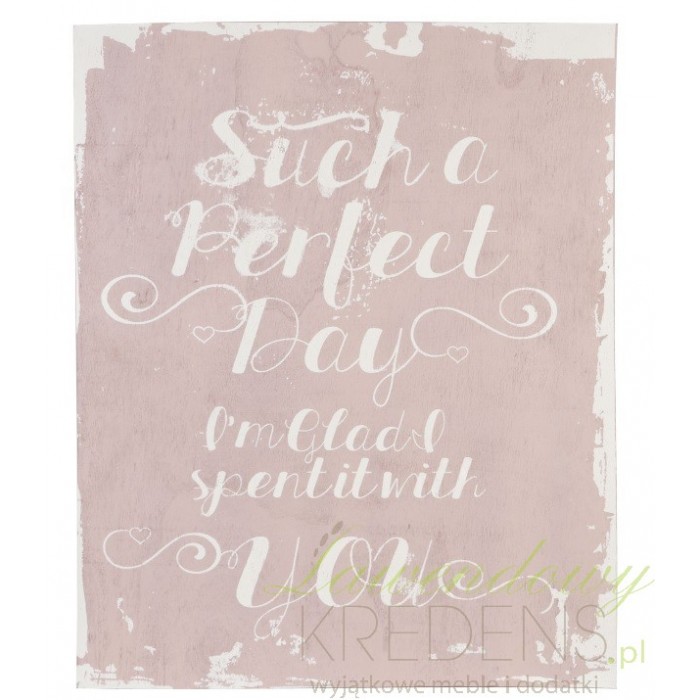Obrazy retro to niepowtarzalna i niezapomniana pamiątka, która będzie stanowić wspaniałą dekorację twojego mieszkania. Różowy obraz firmy Clayre & Eef wykonany został z wysokiej jakości drewna. Obraz z napisami przedstawia słowa: Co za piękny dzień, ciesze się że mogę go spędzić z tobą, napisane po angielsku.
