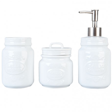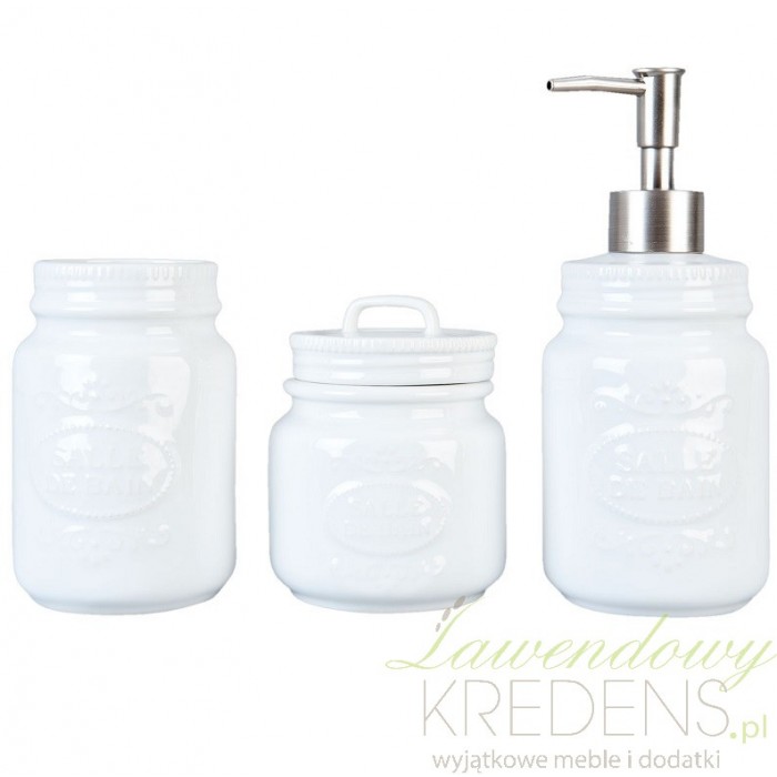 Bardzo modny zestaw łazienkowy, w skład którego wchodzą białe pojemniki przypominające kształtem słoiki!
