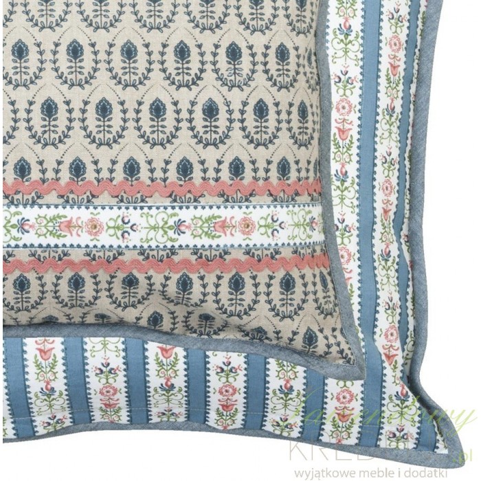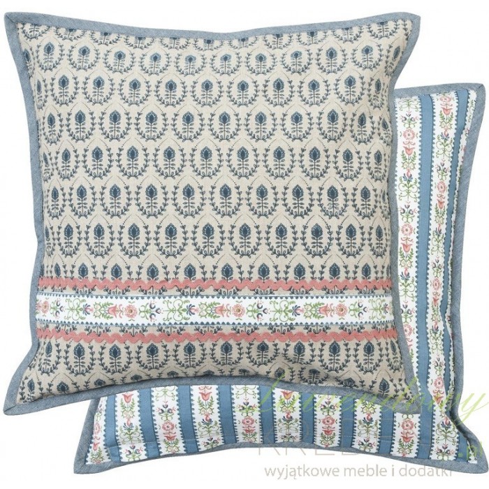 Poszewki w stylu prowansalskim nadadzą twojemu mieszkaniu wspaniałą atmosferę i niepowtarzalny klimat. Poszewka prowansalska ma kwadratowy kształt i wykonana jest w stu procentach z bawełny. Poszewka na poduszkę firmy Clayre & Eef jest dwustronna. Z jednej strony jest niebieska w prześliczne małe kwiatuszki na jasnych tasiemkach, a z drugiej na szarym tle króluje ciekawy, granatowy wzór przepleciony również jasną tasiemką.