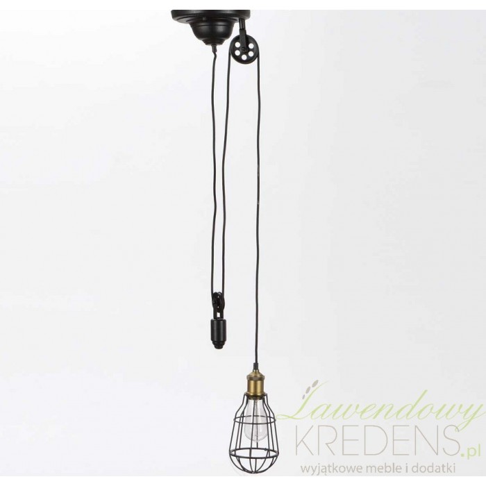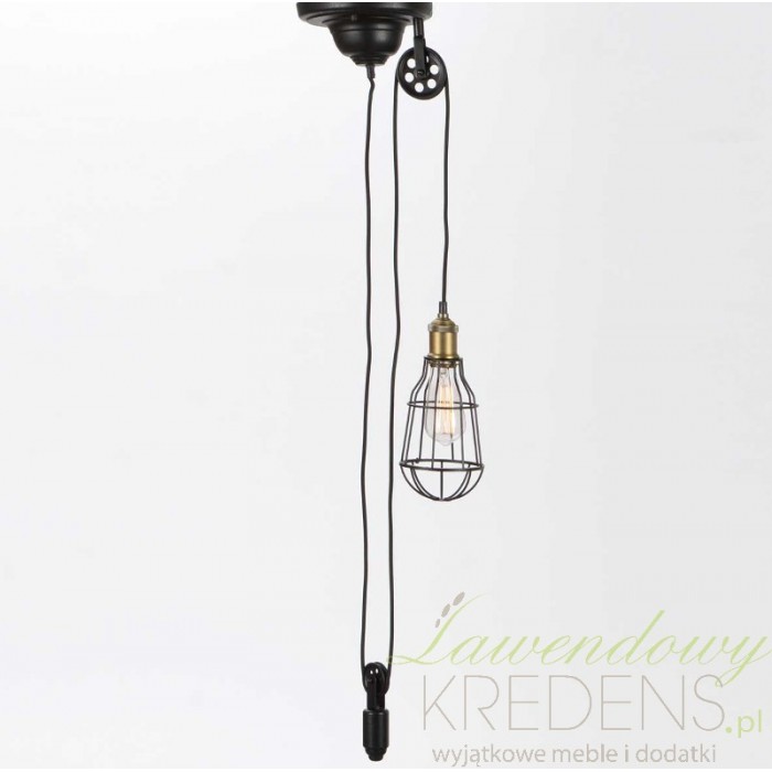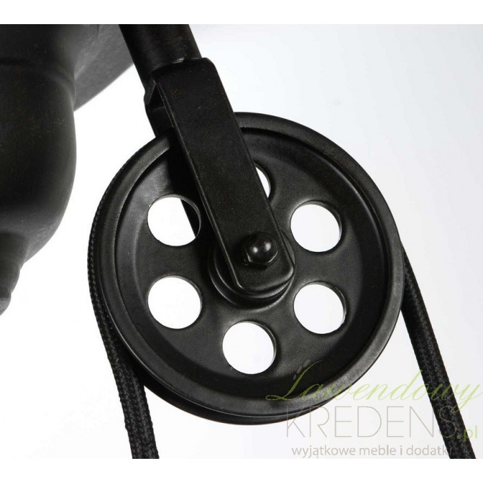 Oświetlenie w stylu industrialnym to niezwykle modne i nowoczesne dodatki do wystroju wnętrz. Lampy w stylu industrialnym to ciekawy i nietypowy pomysł na odmianę swojego mieszkania. Przedstawiona na zdjęciu lampa industrialna wykonana jest z czarnego metalu. Jej znakiem rozpoznawczym jest kołowrotek, na którym jest zawieszona. Lampa zawieszona jest na kablu który można dowolnie regulować.