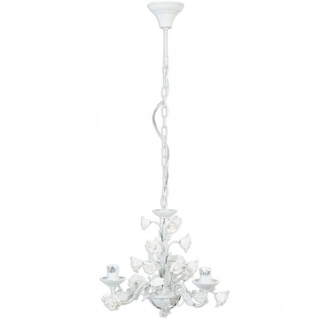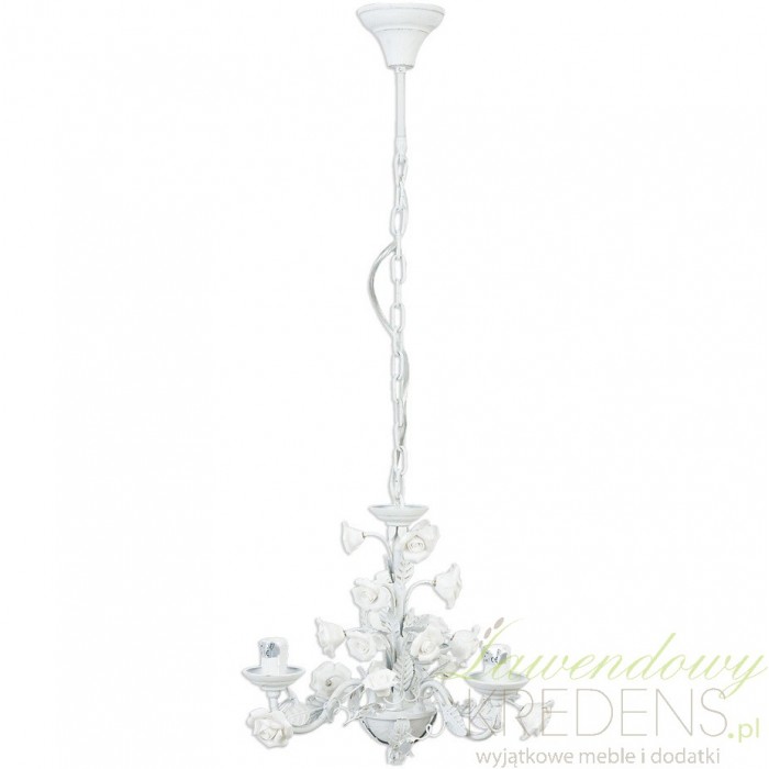Żyrandol w stylu prowansalskim wykonany jest z metalu w kolorze białym. Żyrandol prowansalski