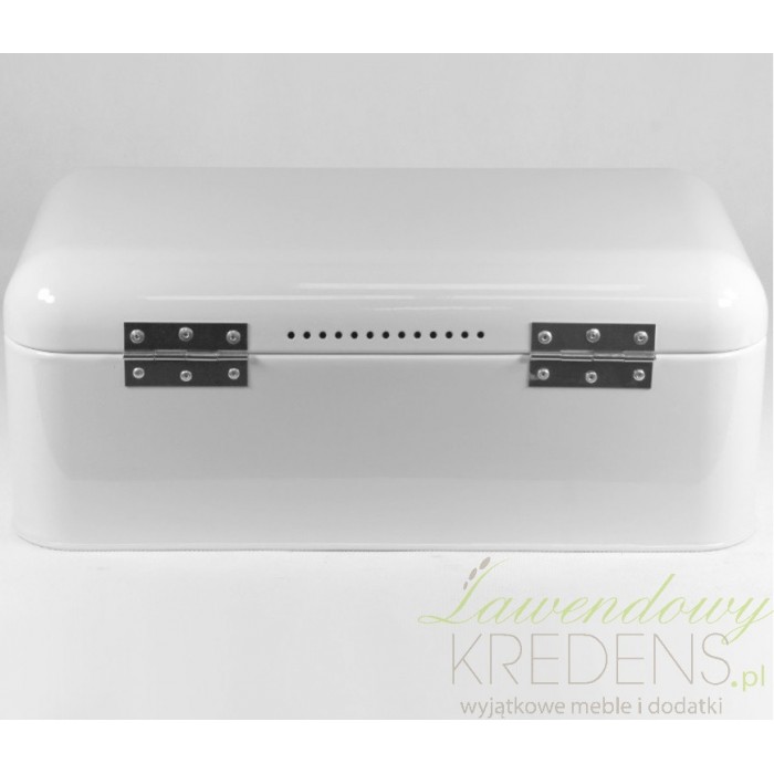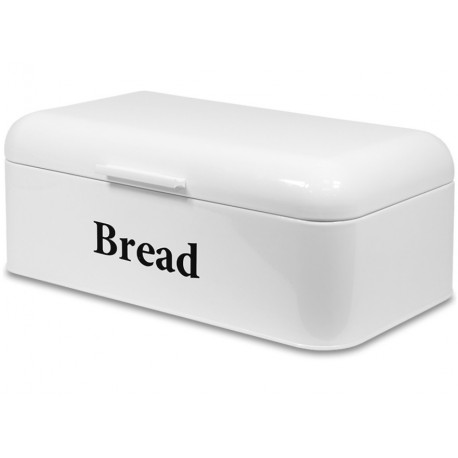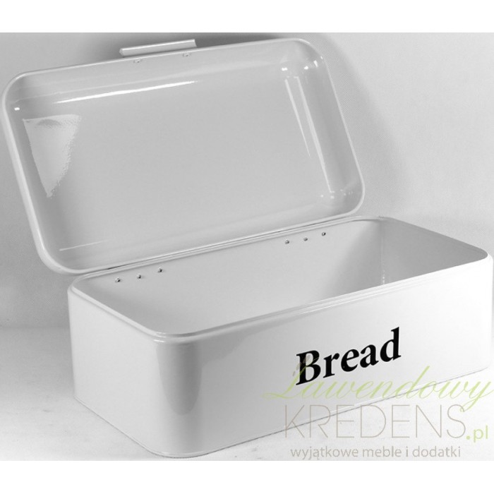 Chlebak metalowy ma kształt prostokąta i uniwersalny biały kolor. Metalowy chlebak otwierany jest do góry co ułatwia jego użytkowanie. Biały chlebak jest bardzo elegancki i posiada czarny ozdobny napis Bread.
