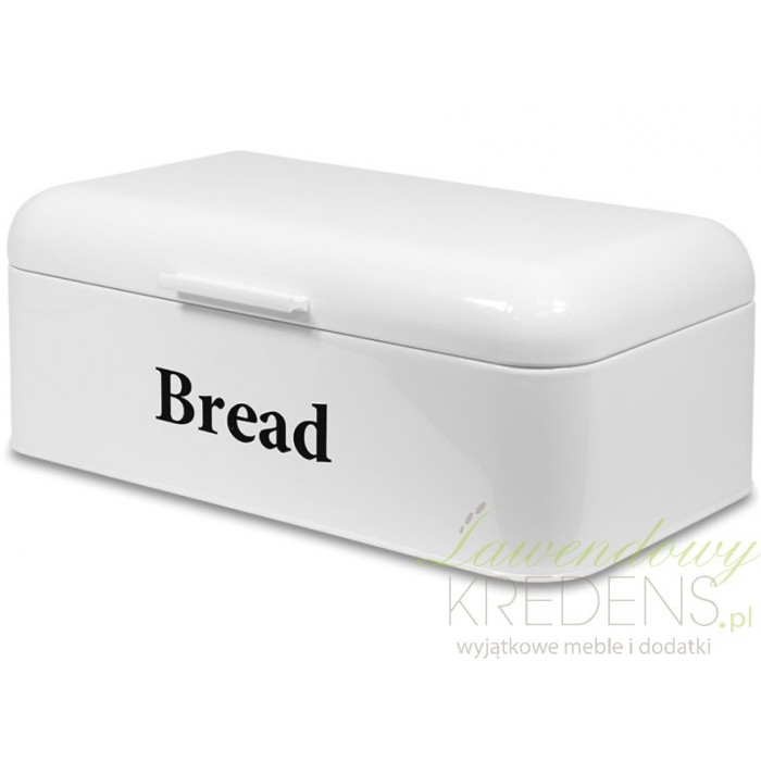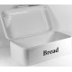 Biały chlebak metalowy z dekoracyjnym czarnym napisem Bread!