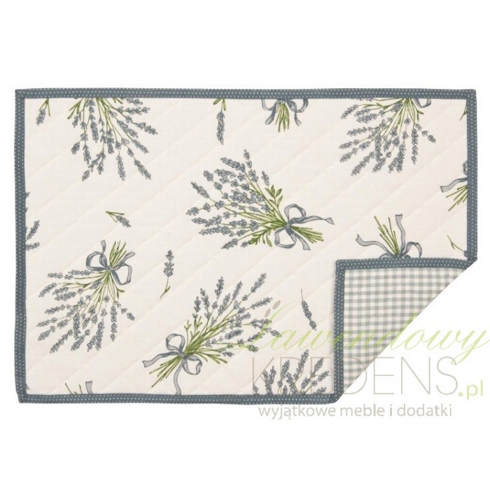 Podkładki na stół to interesujące dodatki w stylu prowansalskim, wykonane zostały ze 100% bawełny. Podkładki te posiadają nadruki z obydwustron z jednej strony zauważyć można bukieciki lawendy zaś z drugiej widoczna jest niebieska kratka. Podkładki stołowe sprzedawane są po 2 sztuki.