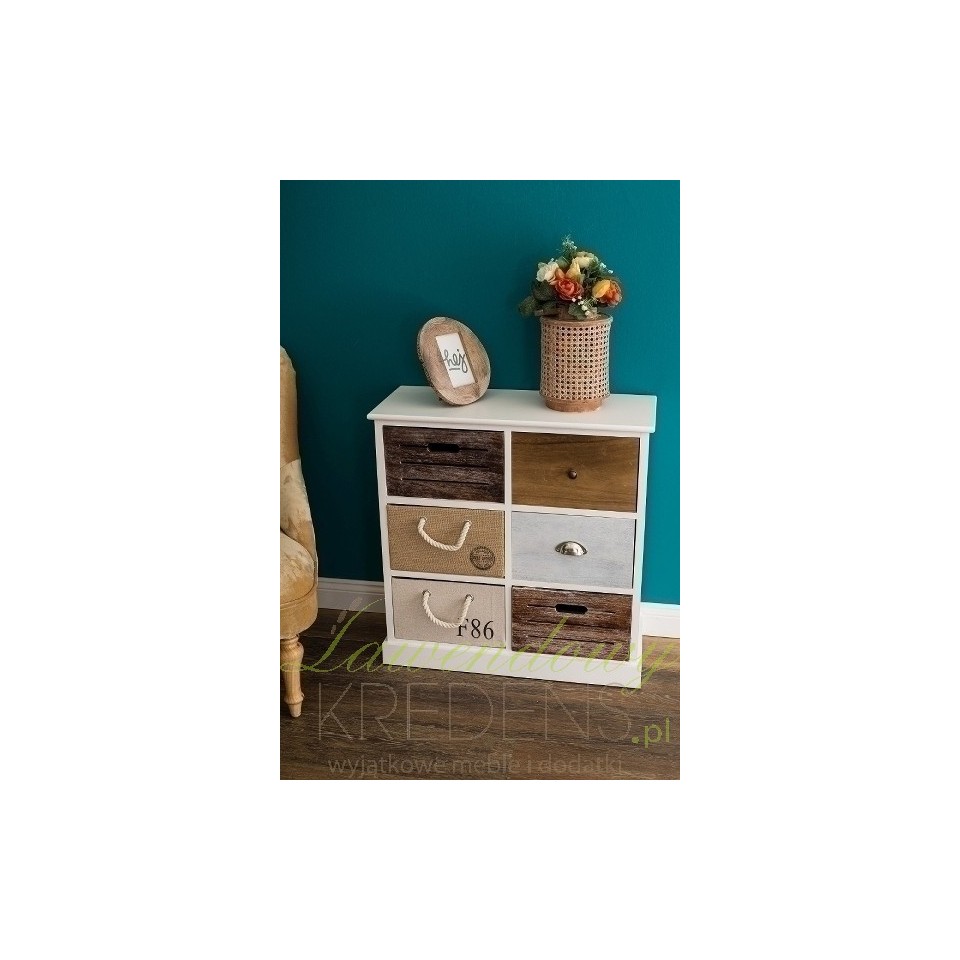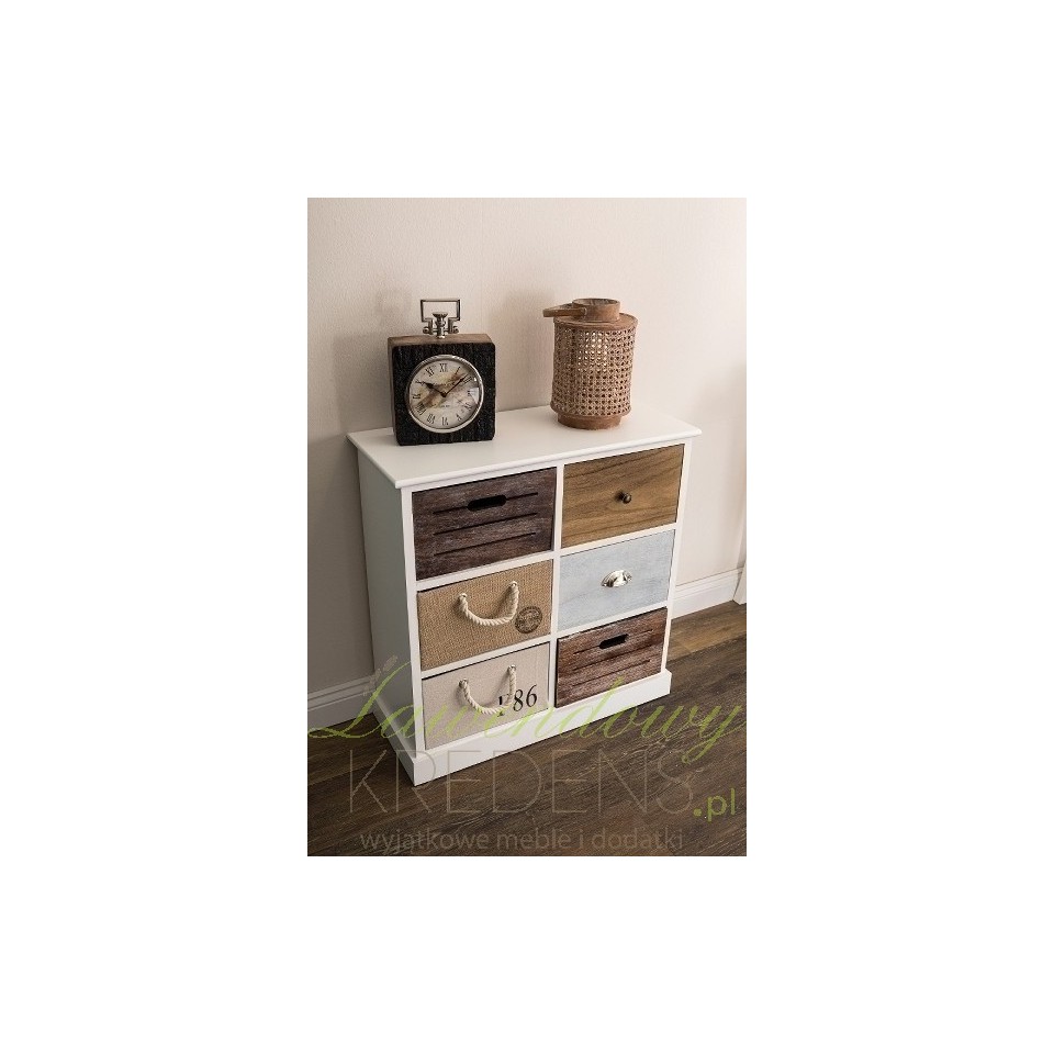 Meble w stylu retro rozświetlą i dodadzą radości w wystroju wnętrza twojego mieszkania. Komoda w stylu retro wykonana jest w nowoczesnym stylu z dobrej jakości drewna. Komoda retro składa się z sześciu wysuwanych szuflad, każda zrobiona w innym kolorze, z innymi uchwytami. Wspaniale będzie wyglądać w pokoju czy sypialni.
