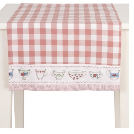 Bieżniki stołowe i bieżniki w stylu prowansalskim chronią stół przed zabrudzeniem i zarysowaniem. Są one także wspaniałą dekoracją stołu, która nadaje twojej kuchni styl i klimat. Bieżnik prowansalski firmy Clayre & Eef jest w czerwono-białą kratę a na końcu posiada ozdobę w postaci filiżanek w różne wzory. Może być idealnym podarunkiem dla bliskich.