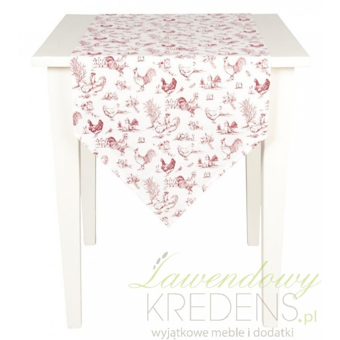 Bieżniki stołowe to szeroki wybór wzorów i kolorów. Bieżnik na stół wykonany jest z dobrej jakości bawełny w kolorze biało-czerwonym. Bieżnik w stylu rustykalnym idealnie nadaje się do wiejskiego domku lub dla miłośników zwierząt. Zdobią go bowiem gęsto koło siebie ułożone kurki.
