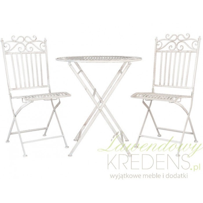 Białe, metalowe meble do ogrodu w stylu prowansalskim w postaci dwóch krzeseł i stolika!