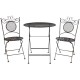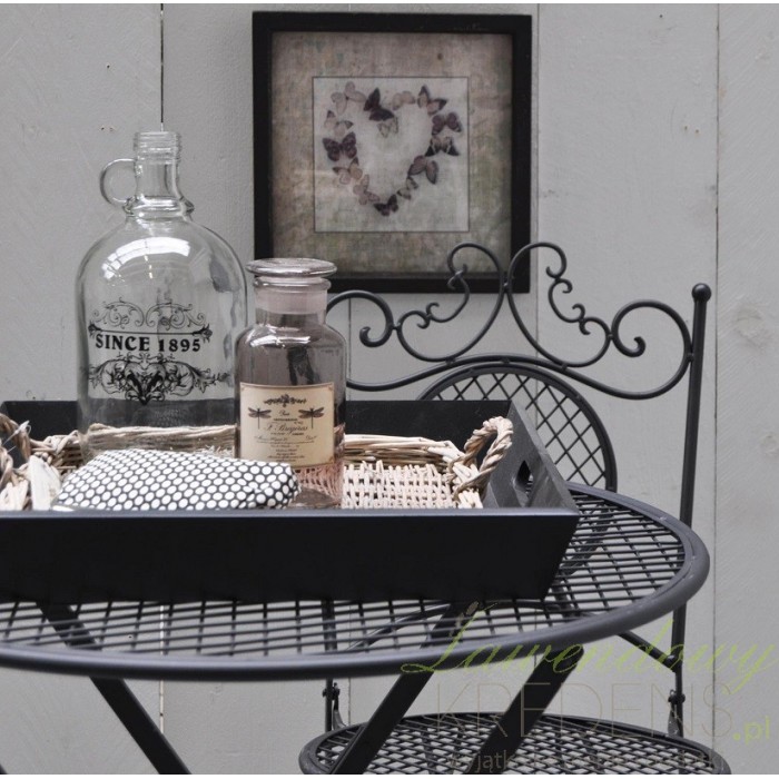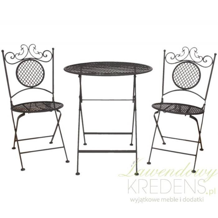Meble ogrodowe mają czarny kolor i składają się z dwóch krzeseł i stołu. Meble metalowe wspaniale nadają się do ogrodu i będą stanowić jego piękną dekorację. Meble do ogrodu firmy Clayre & Eef wyróżniają okrągłe siedziska i blat oraz ślicznie zdobiona rama krzesła.
