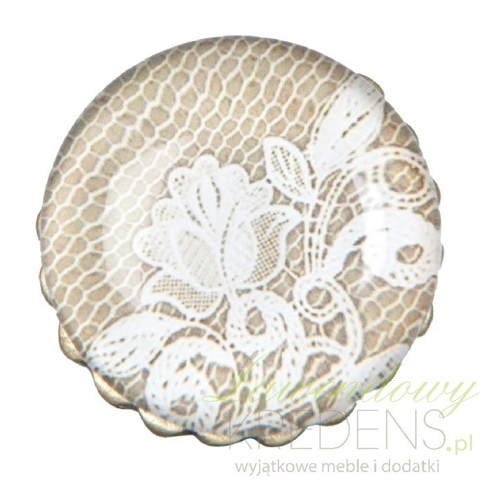 Śliczne gałki do mebli firmy Clayre & Eef wykonane zostały z metalu. Uchwyty do mebli mają biały koronkowy wzór z widocznym motywem kwiatowym. Gałki meblowe stanowią niezwykle atrakcyjną dekorację, nie tylko mebli, ale także całego pokoju. Dla prawdziwych dam!