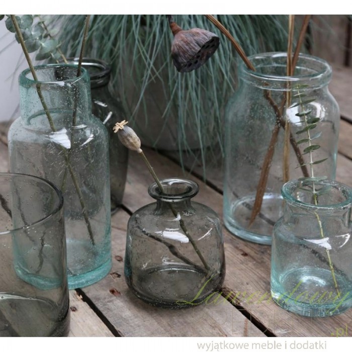 Firma Chic Antique słynie z niepowtarzalnych i pomysłowych dodatków w stylizacji wnętrz domów i mieszkań. Szklany wazon wykonany jest ze szkła z recyklingu, co nadaje mu unikalnej wartości. Szklany wazonik jest przezroczysty i ma niewielki rozmiar. Świetnie będą w nim wyglądać suszone kwiaty.