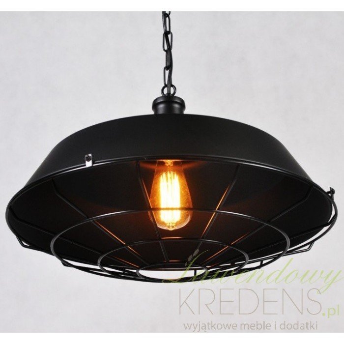 Lampy w stylu industrialnym stanowią wspaniałą dekorację mieszkania. Lampy metalowe to modne i nowoczesne rozwiązania do mieszkań. Lampa industrialna ma kolor czarny i jest wykonana z metalu. Ma nietuzinkowy wygląd, który wyróżnia zamocowana od spodu metalowa kratka.