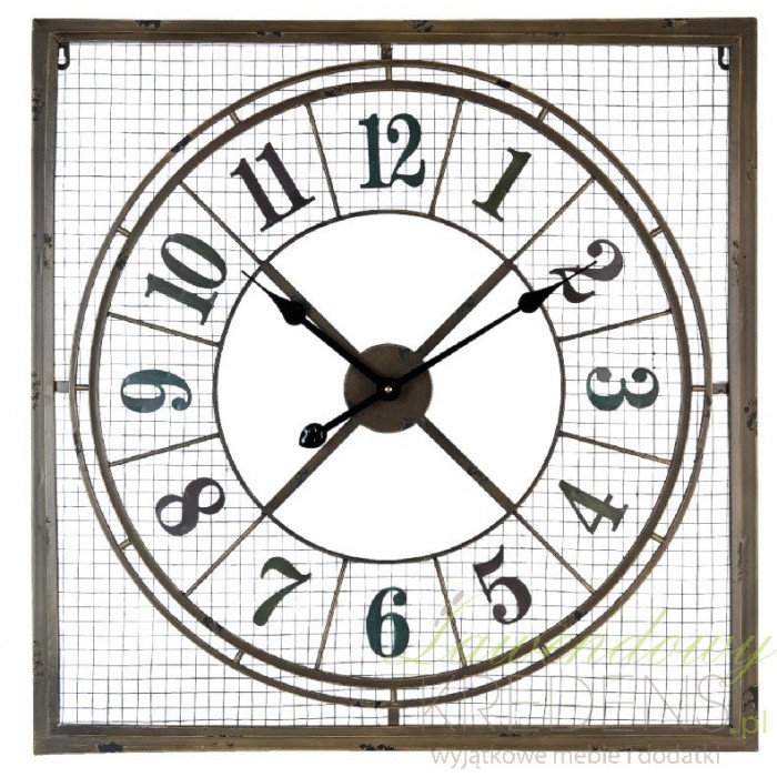 Zegary ścienne z metalu w industrialnej stylistyce wyglądają jakby przez długie lata odmierzały czas w fabrykach. Przykładem jest piękny zegar industrialny w kolorze starego złota, który jest ażurowy i ma dużo postarzeń. Cyfry oznaczające godziny są zamontowane między dwoma metalowymi pierścieniami, a pierścień z kolei jest wpasowany w duży kwadrat. Zegary w stylu industrialnym możesz z powodzeniem wykorzystać także w nowoczesnych aranżacjach!