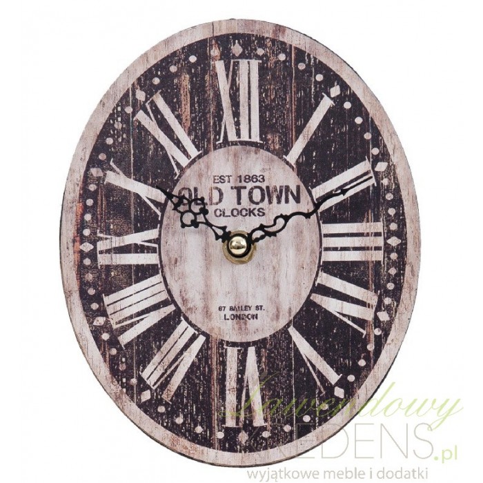 Brązowy zegar owalny z kolekcji Vintage z napisem Old Town!