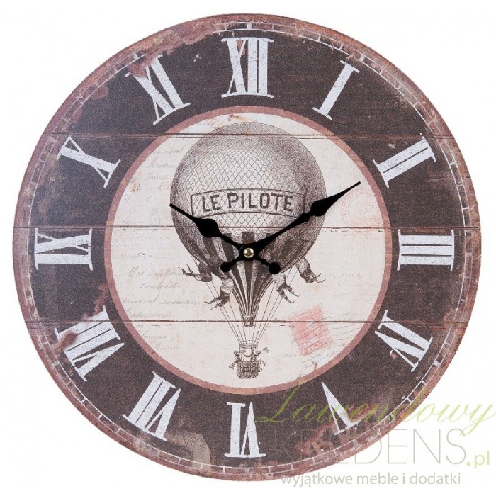 Zegar w stylu prowansalskim z rzymskimi cyframi i balonem, to ciekawa dekoracja która rozbawi każdego gościa naszego domu.