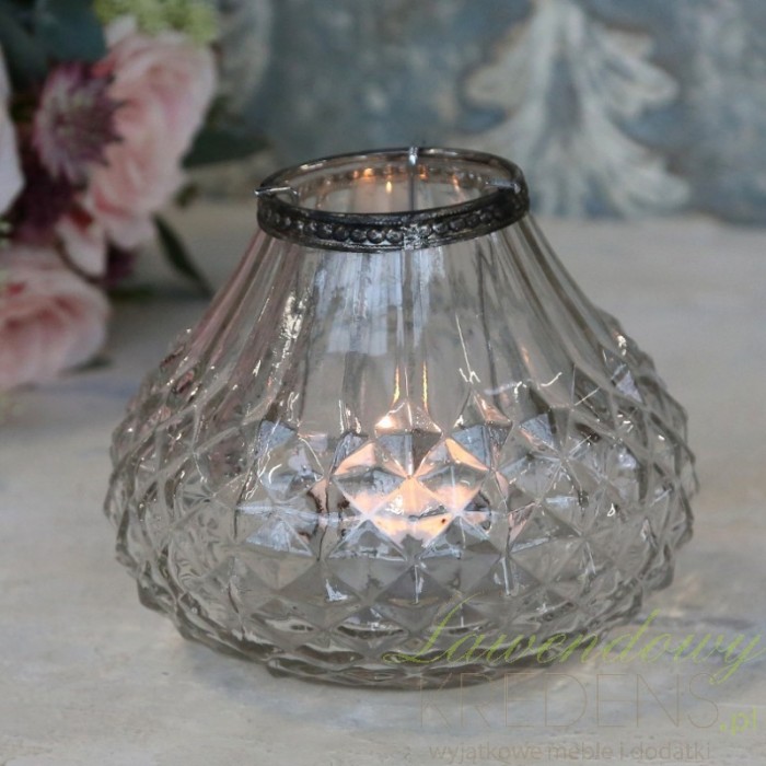 Śliczny, szklany lampion firmy Chic Antique wzorowany na stary, elegancki styl!