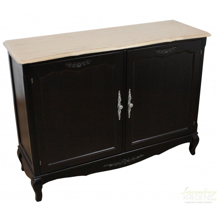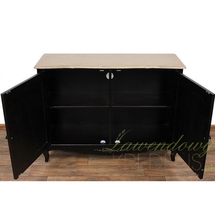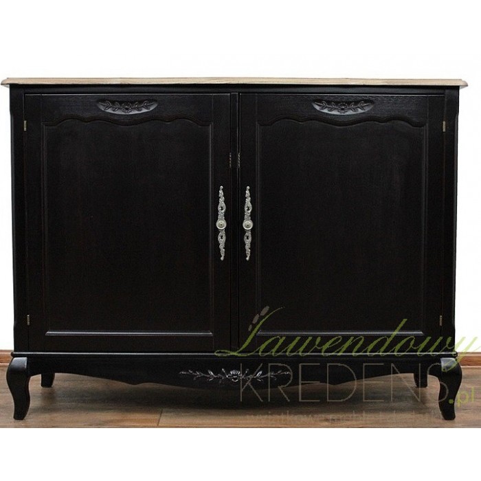 Czarna komoda z kolekcji Nero to niezwykle pojemny mebel wykończony francuskim wzornictwem.