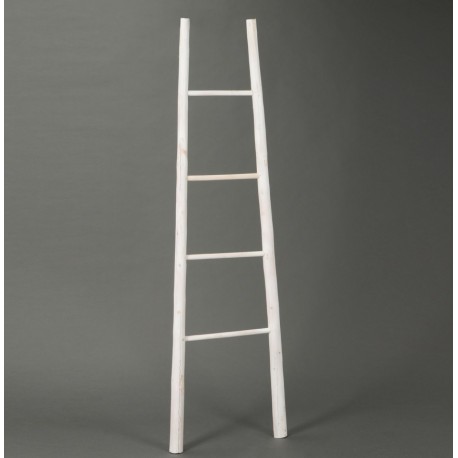 Bambusowa, biała drabina dekoracyjna z czterema szczeblami, na których można powiesić ozdobne przywieszki czy nawet kwiaty!