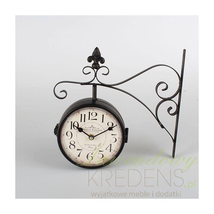 Piękne i klimatyczne zegary dworcowe, dzięki odpowiedniej konstrukcji są zdecydowanie bardziej widoczne i w dodatku posiadają podwójną tarczę. Postarzane tarcze w kremowym kolorze pokazują godziny na cyfrach arabskich, dzięki czemu nie będzie problemu z ich odczytaniem. Trwała metalowa obudowa z dekoracyjną lilijką to doskonały wybór!
