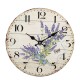Zegar z lawendą wykonany z okrągłej płyty MDF i ozdobiony nadrukiem imitującym drewniane deski.