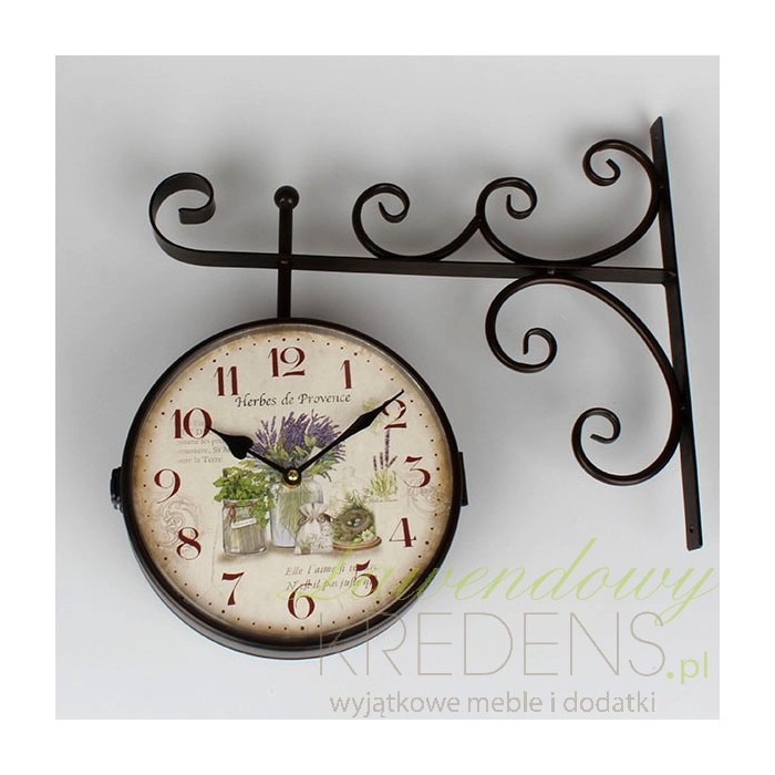 Zjawiskowo piękny zegar dworcowy o dwustronnym profilu, ozdobiony prowansalskim motywek kwitnącej lawendy!