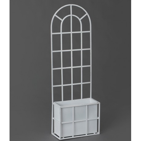 Stacjonarny stojak na kwiaty z wysoką, prostokątną donicą osadzoną w specjalnej konstrukcji, która jest jednocześnie podporą dla wysokich kwiatów. Ten piękny kwietnik prowansalski świetnie wyglądać będzie tak na słonecznym tarasie czy w otwartym ogrodzie. Możesz go także postawić przy ogródkowej pergoli różanej!