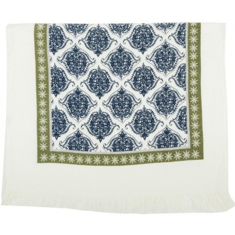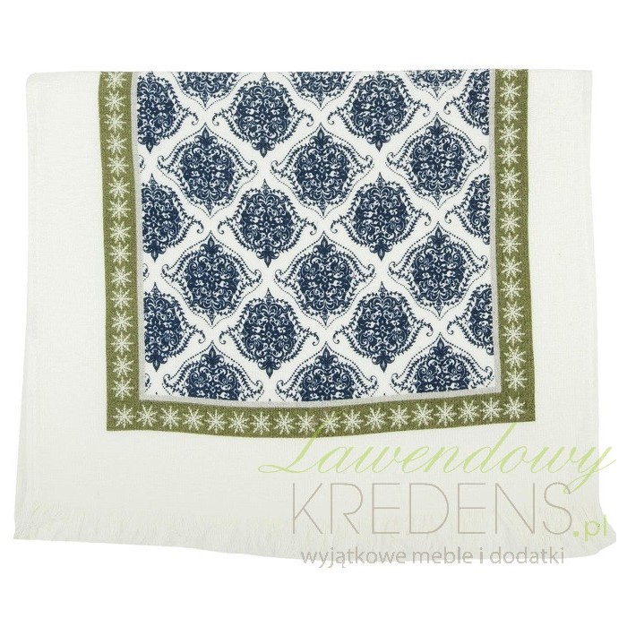 Ręcznik kuchenny firmy Clayre & Eef wykonany jest z wysokiej klasy bawełny i ma kształt prostokątu. Środek ręcznika stanowią ciekawe niebieskie wzory, a naokoło zdobi go zielony pasek z białymi gwiazdkami. Ręcznik jest kolorowy co czyni go bardzo pozytywnym elementem w kuchni.
